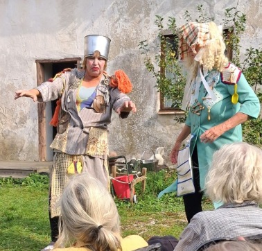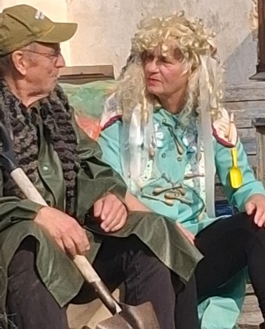 Bild från Hallwyllska Palatset Sommarteater i Stockholm 2007 av "Den Jäktade" av Holberg. Här spelar jag "Fru Fuxia" fru till Den Jäktade som lurar honom med att klä ut sig till Advokat, Lakej och Tysk. Jag spelade även en skräddare i samma pjäs.